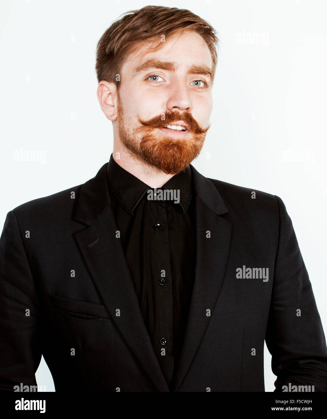Young Red Hair Man With Beard And Mustache In Black Suit On White Background Stock Photo Alamy